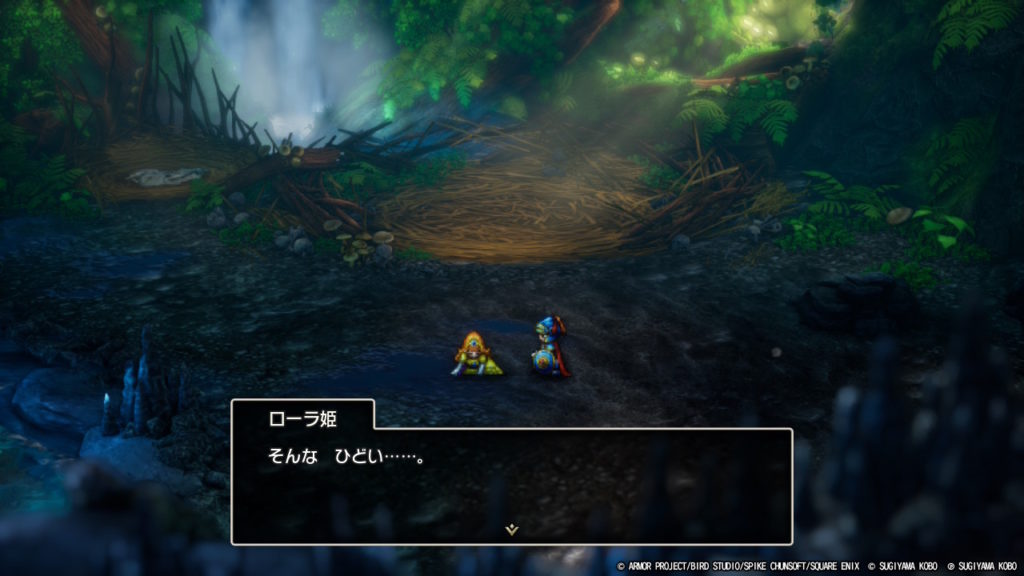 Iは一人旅ということもあり単調なのは変わらないと思いきや、ローラ姫と最後まで旅はできるし、戦闘中にローラ姫が応援や心配してくれるので寂しくなかった……!